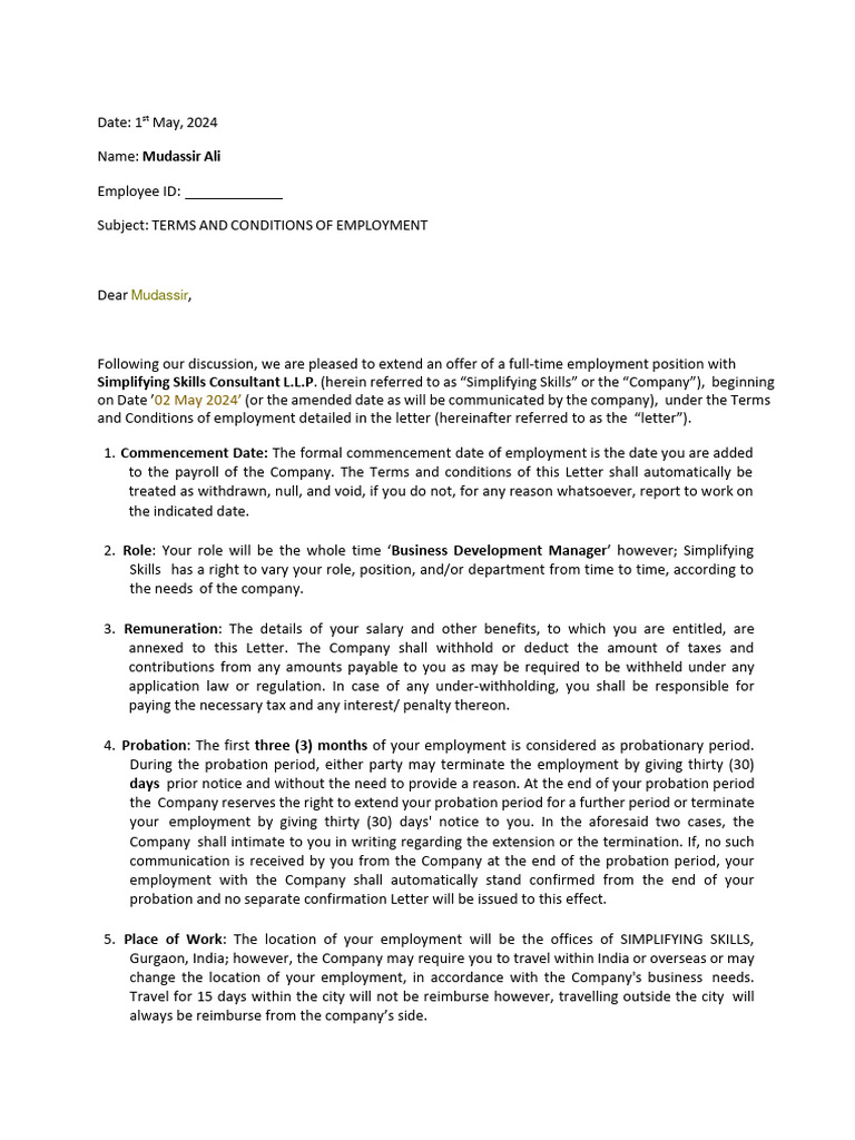 Simplifying Skills Mudassir Offer Letter (1) | Download Free PDF ...