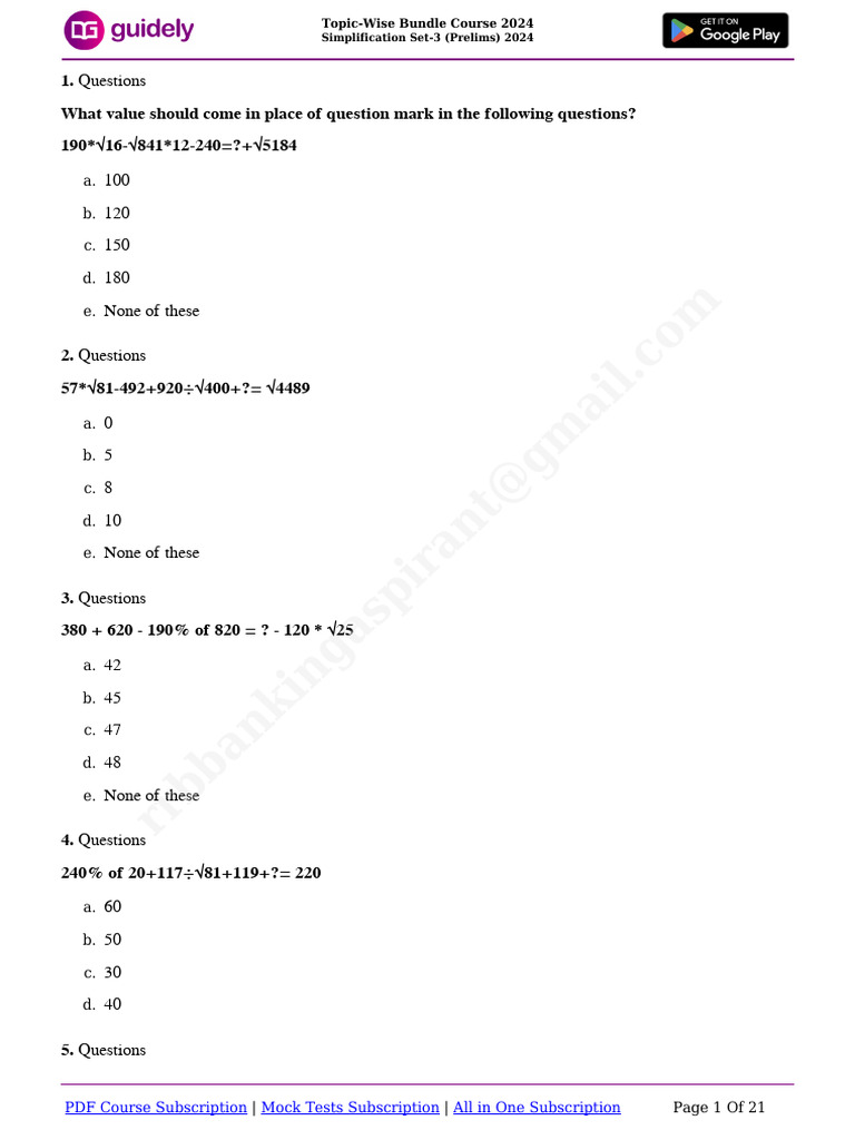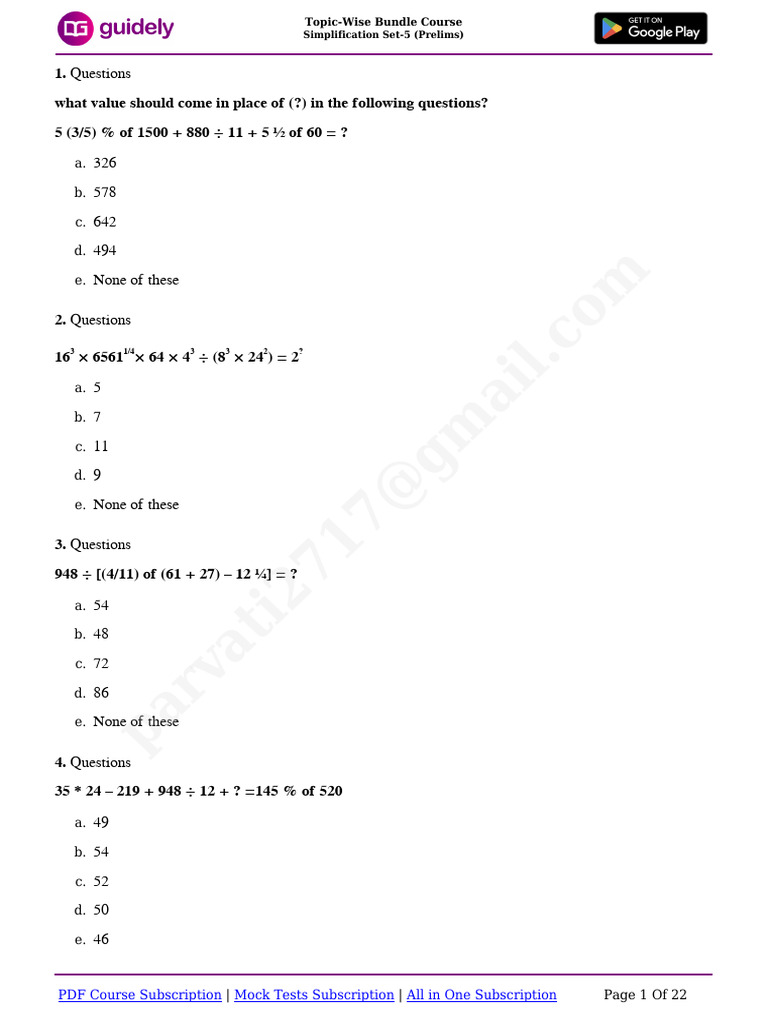 Simplification Set - 3 (Prelims) | PDF