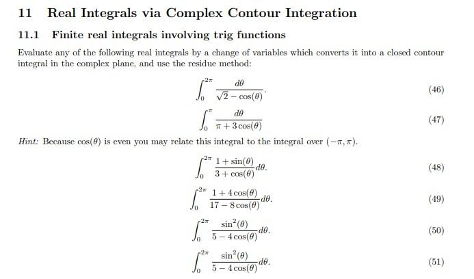Solved Calculate those “real” integrals using the complex | Chegg.com