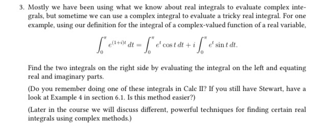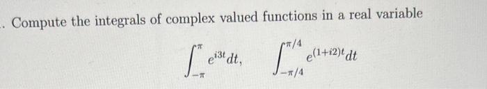 Solved Compute the integrals of complex valued functions in | Chegg.com