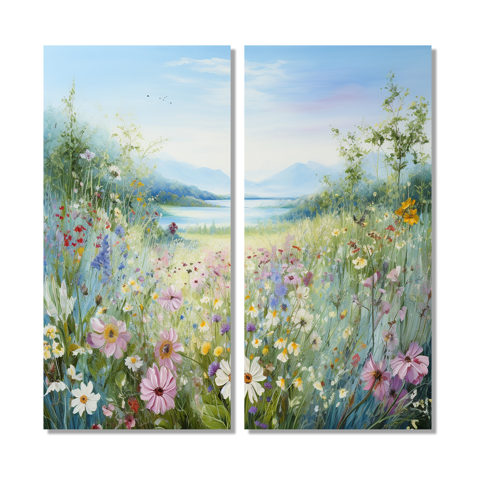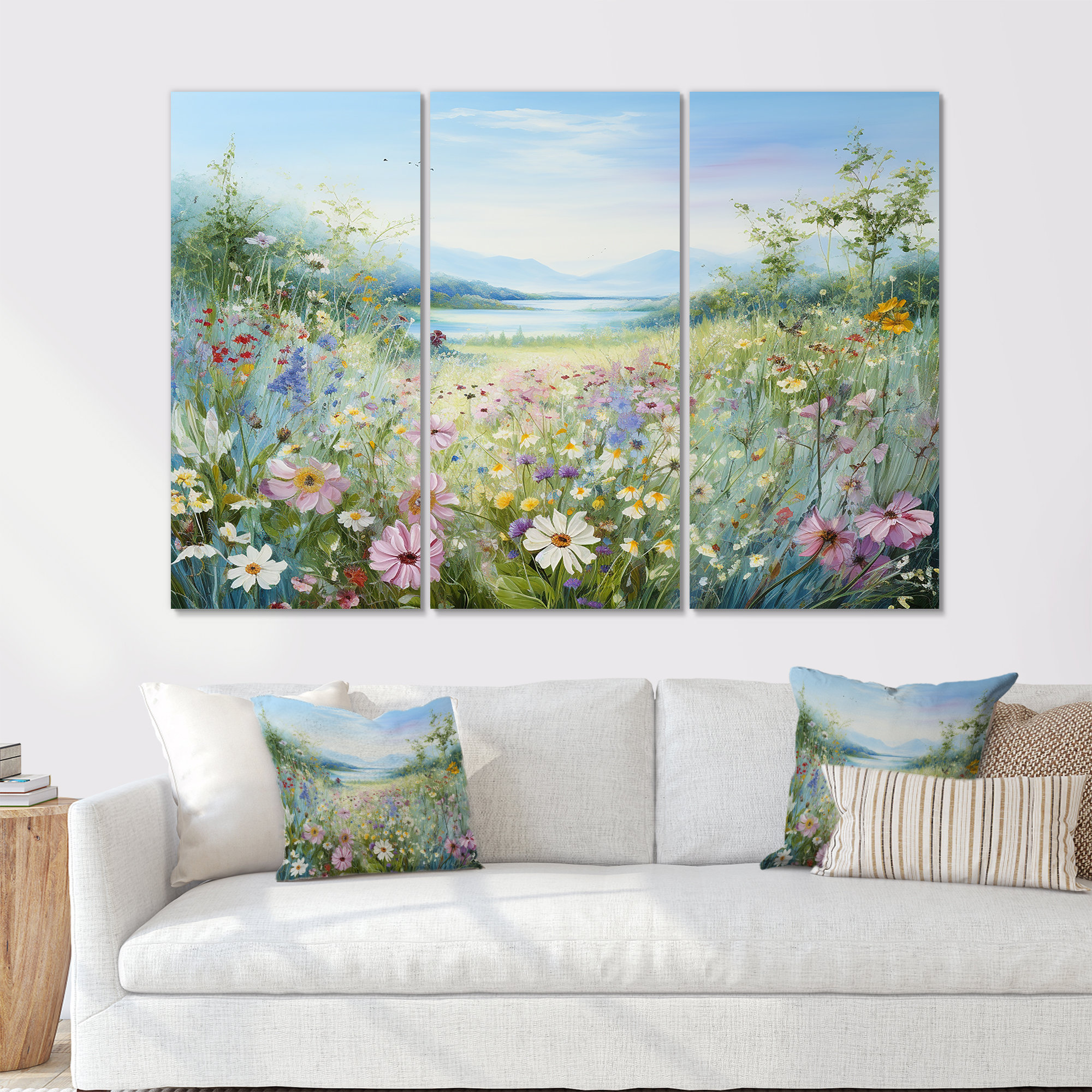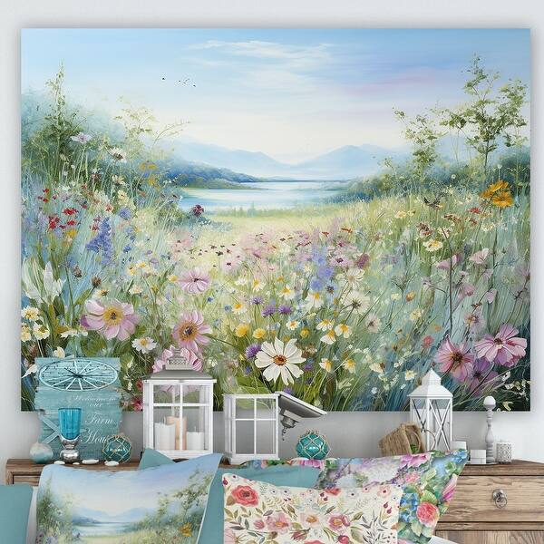 Designart "Simplity Wreath Green Flower Field " Flower Field Wall Art ...