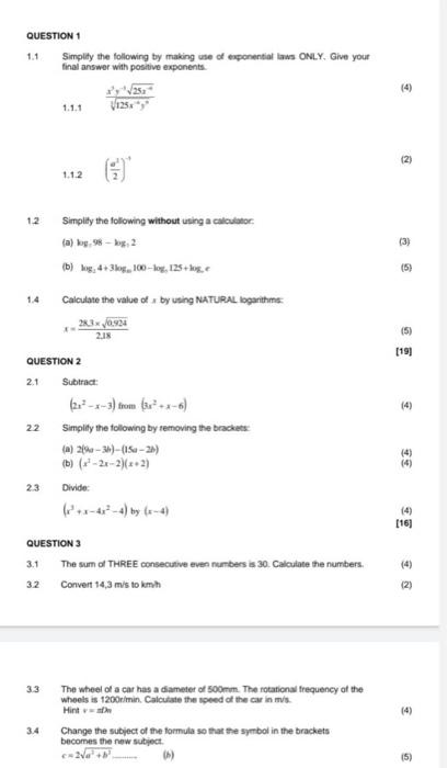 Revision of Maths1. Simplity:-8.(i) −15a+(aa−b)+5(2a−b)(ii) a(1+2b)+3(..