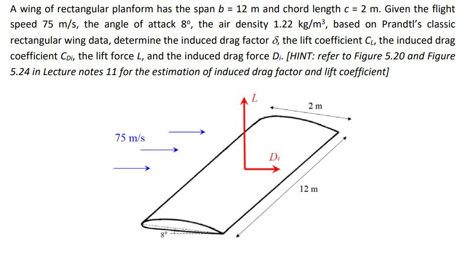 Solved A wing of rectangular planform has the span b = 12 m | Chegg.com
