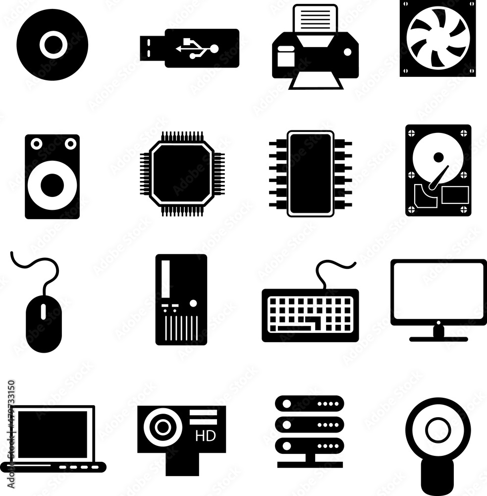 Computer Hardware Icons. PC Components. Simplus series. Each icon is a ...