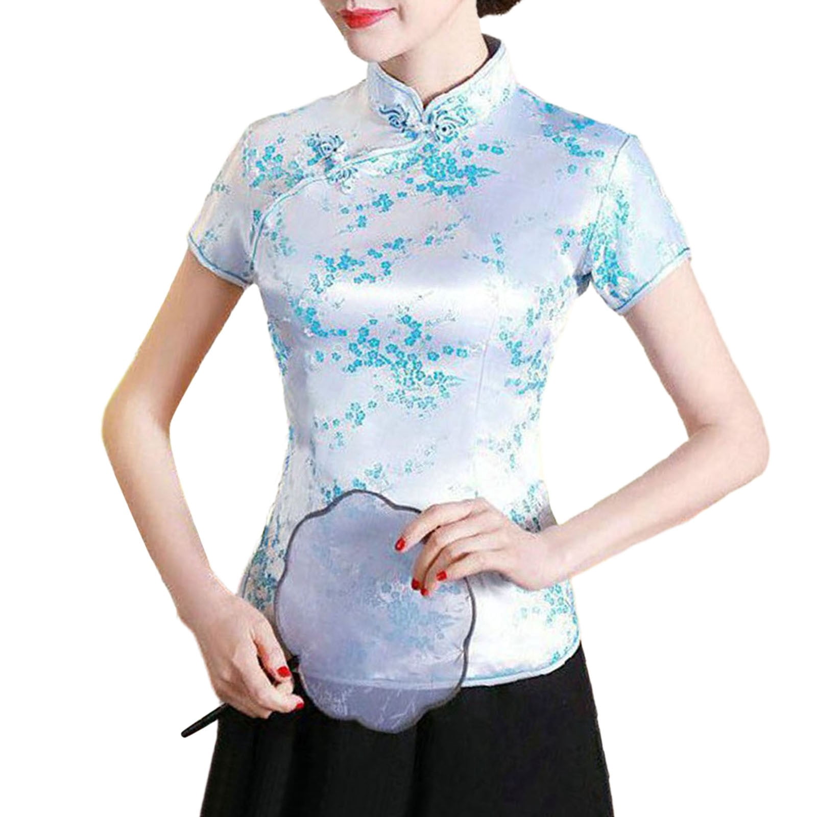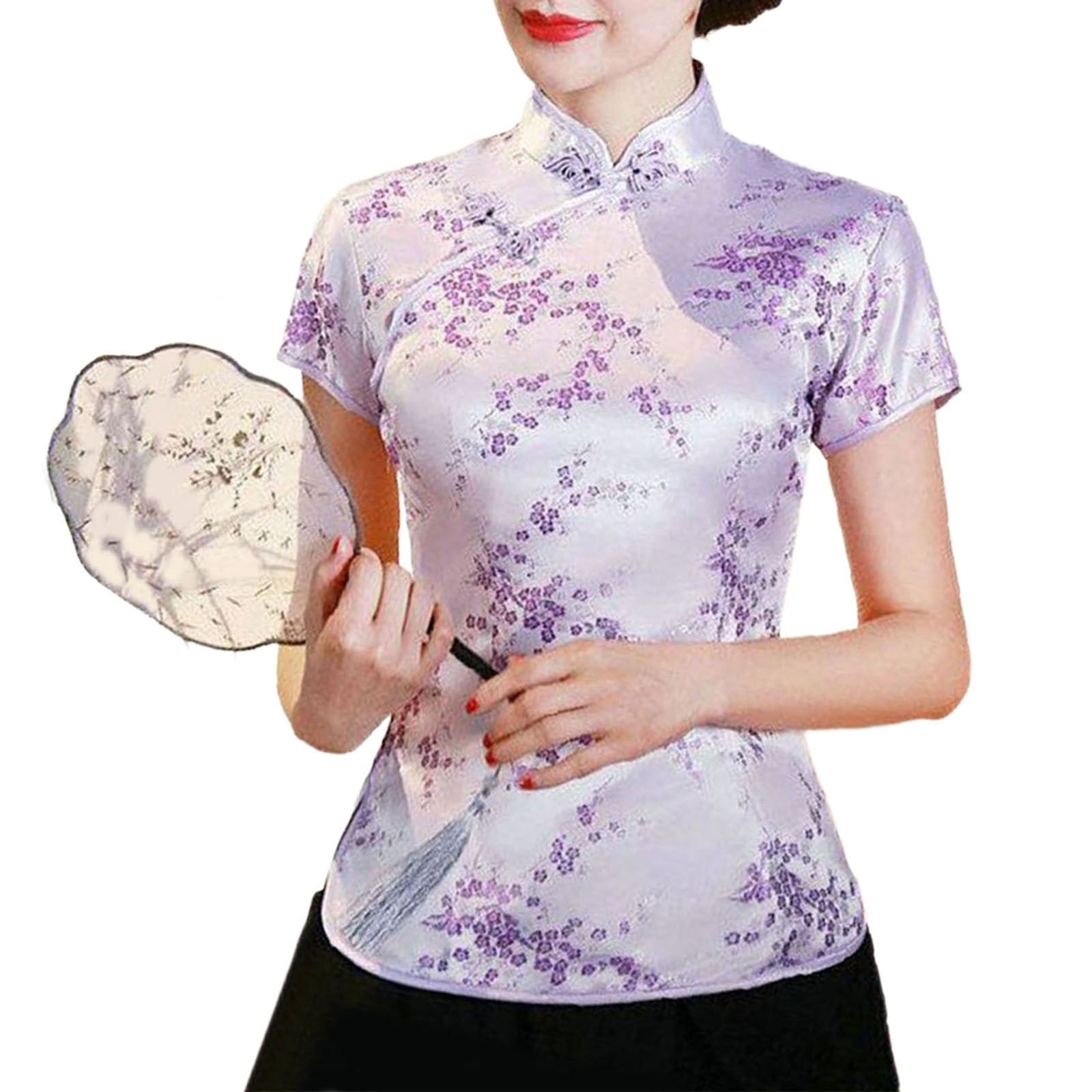 BOOMNY Womens Short Sleeve Modern Cheongsam Tops Floral Graphic Elegant ...