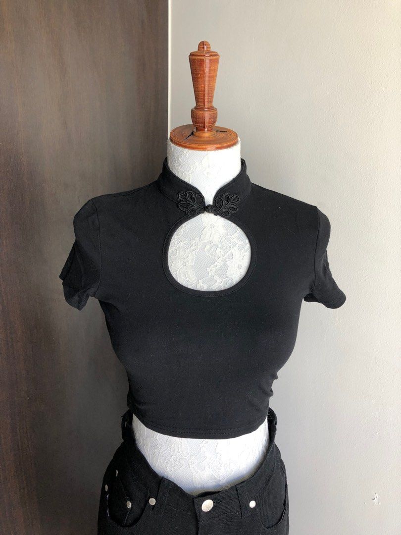 Asos black crop mandarin collar keyhole top baby tee qipao cheongsam ...