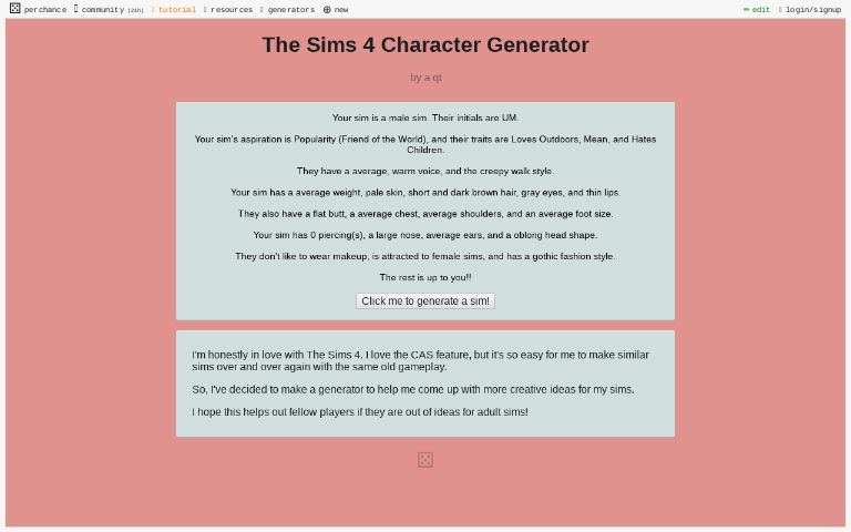 Sims 4 ― Perchance Generator