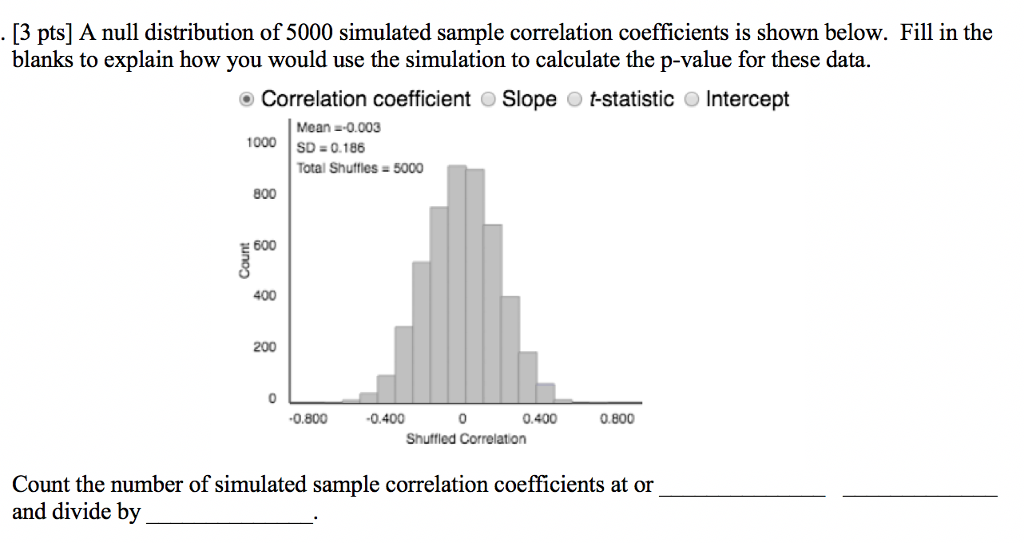 Solved . [3 pts] A null distribution of 5000 simulated | Chegg.com