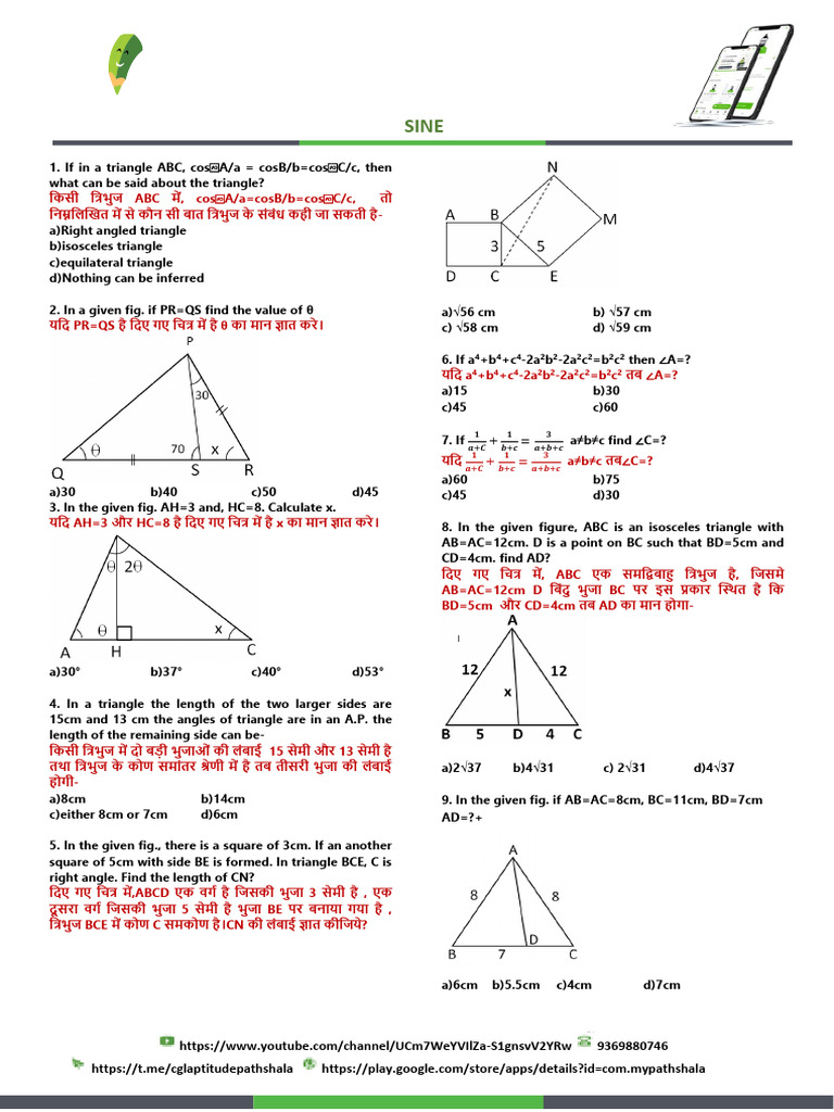 Sine Rule Practice Questions and Answers | PDF