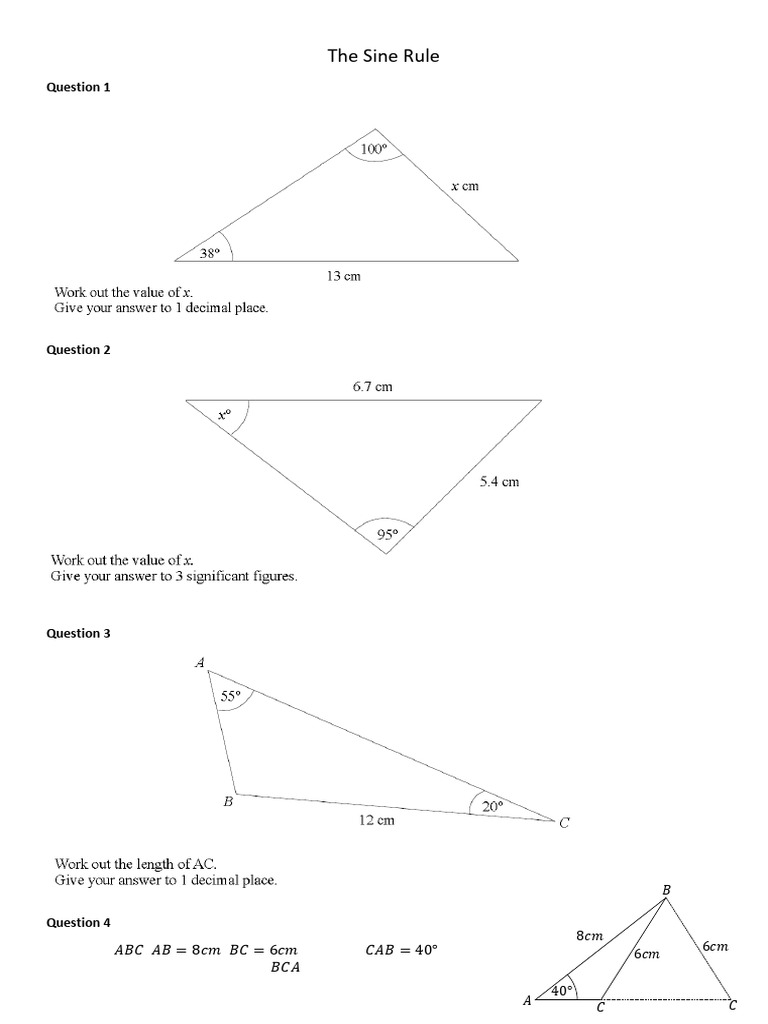 Sine Rule and Cosine Rule Questions | Teaching Resources