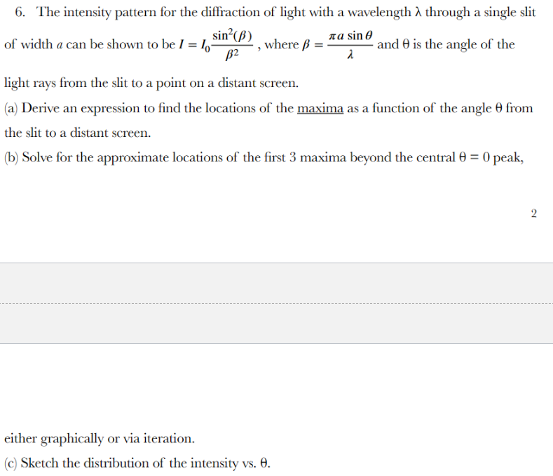 Solved The intensity pattern for the diffraction of light | Chegg.com