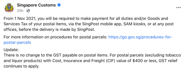 SingPost Allows Cashless GST/Duty Payments For Imports From 1 Nov, Pay ...