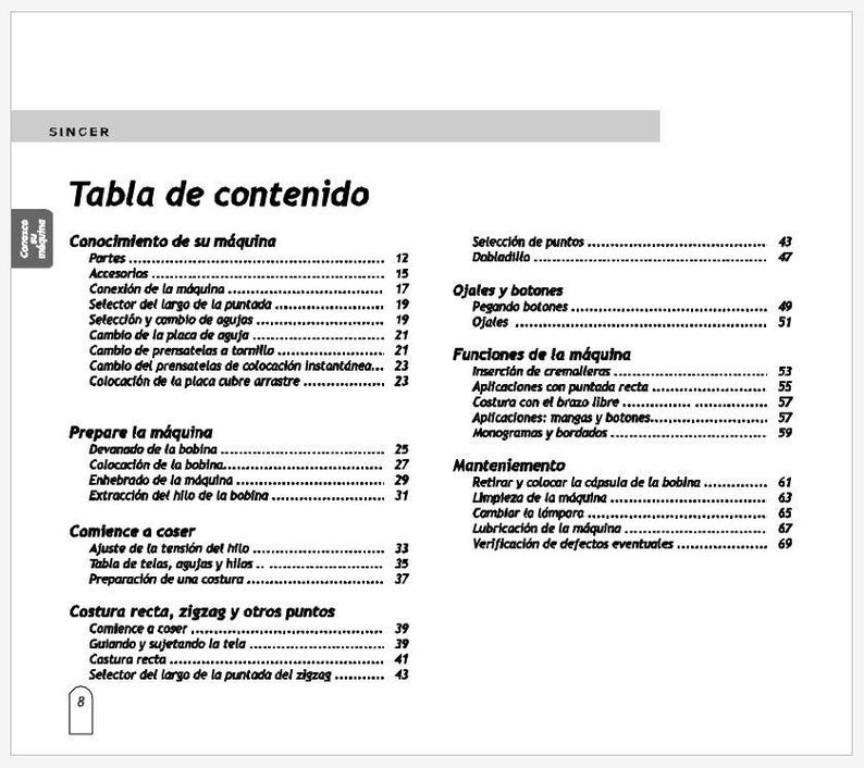 SINGER 2808 SEWING MACHINE INSTRUCTION MANUAL 76 PAGES ENG ESP FRANC ...