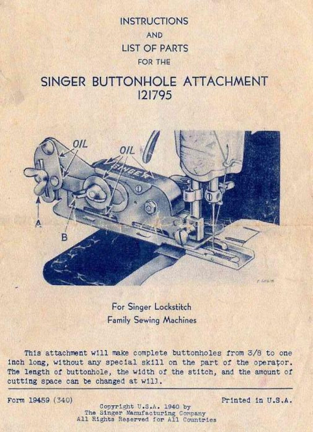 Singer Button Hole Attachment - Singer Sewing Machine - Monogram Eyelet ...