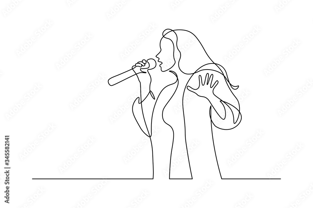 Continuous one line of woman beautiful singer. Woman singer with ...