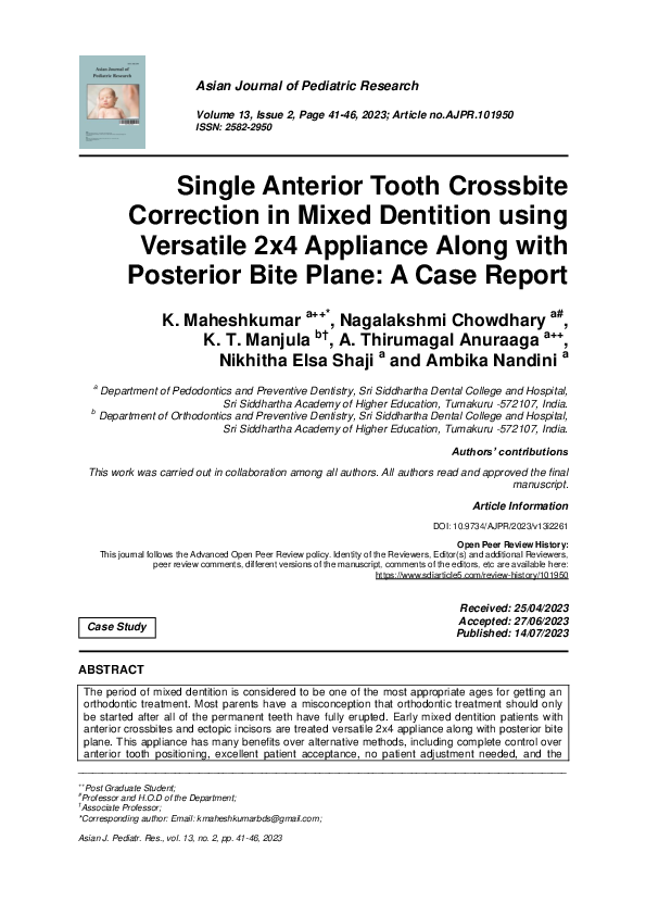(PDF) Single Anterior Tooth Crossbite Correction in Mixed Dentition ...