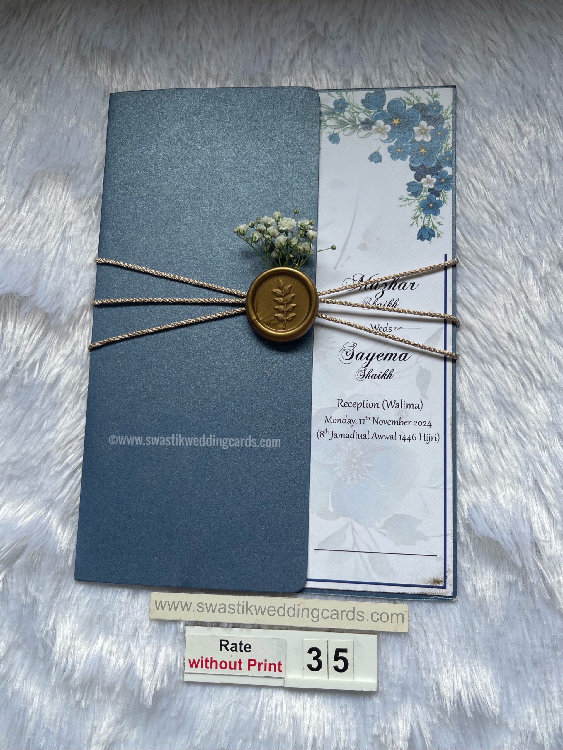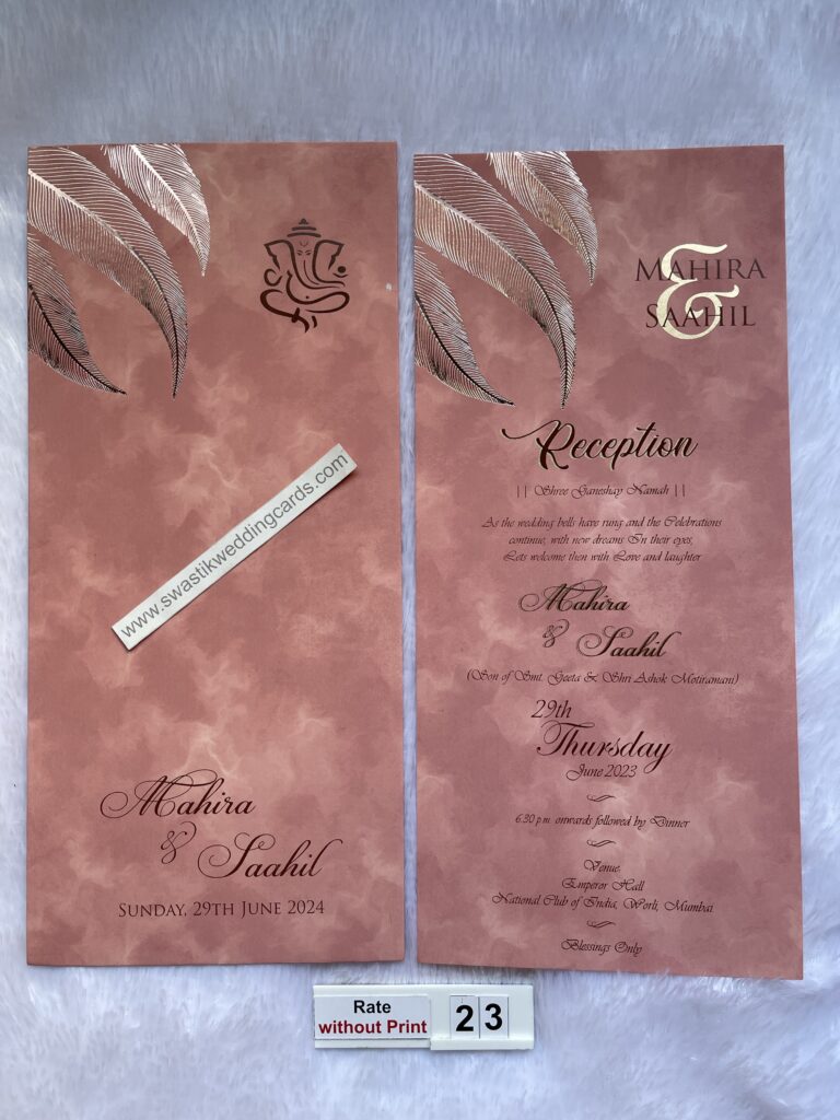 Mettalic paper Single invitation card with 3 inserts – Swastik Cards