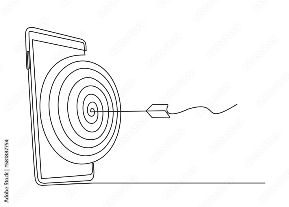 Continuous one single line drawing of smartphone and arrow hitting ...