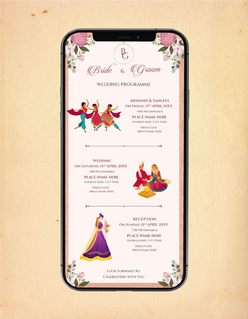 Multiple Events Wedding Invitation Card | Floral Theme with Illustrati ...