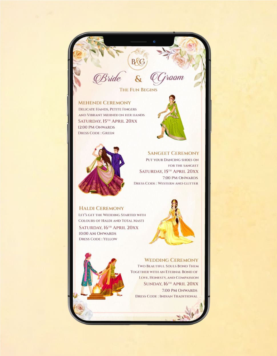 Multiple Function Wedding Invitation Card | Floral Theme with Dress Co ...