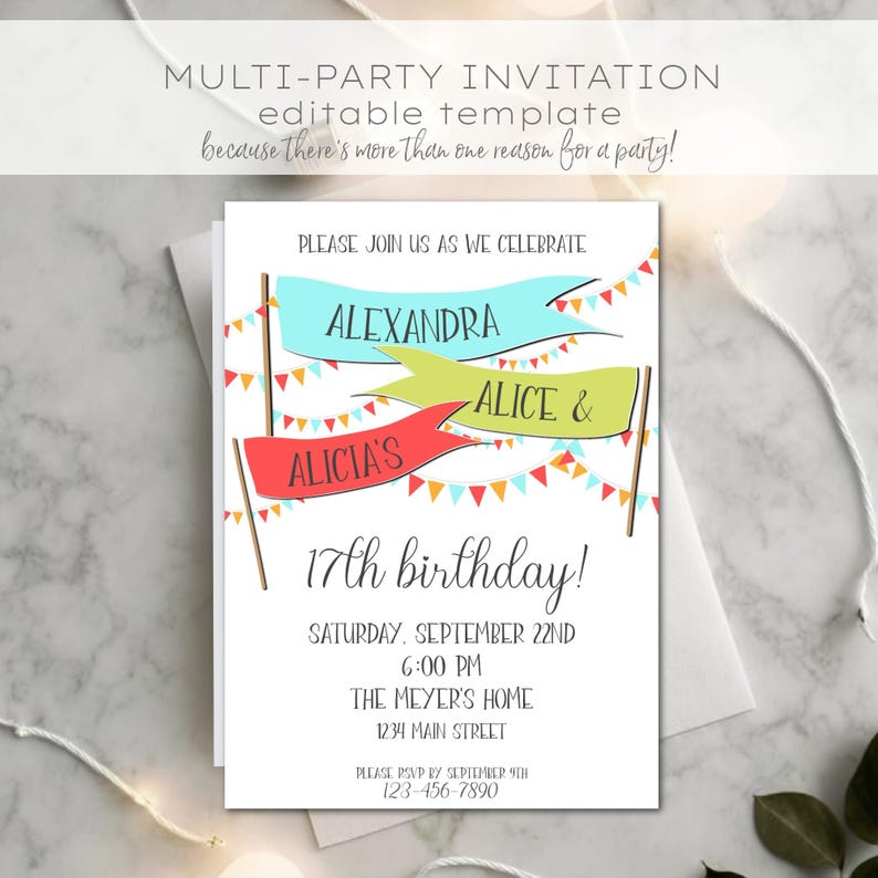 Multiple People Birthday Party Invitations