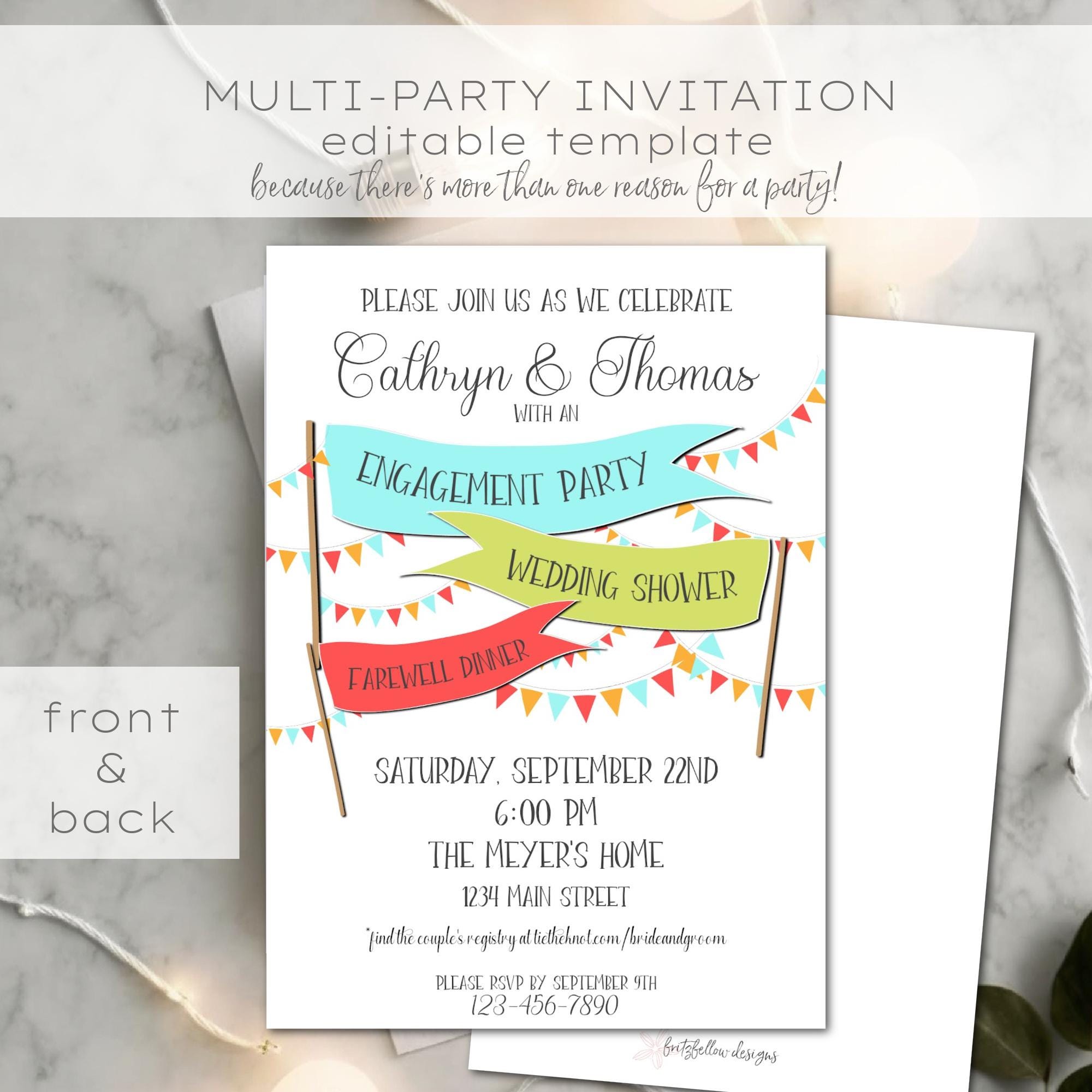 Multi-event Party Invitation Template: Birthday, Retirement, Engagement ...