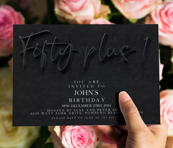 50 plus 1 birthday Invitation for Men, Black Simple 50+1 Instant ...