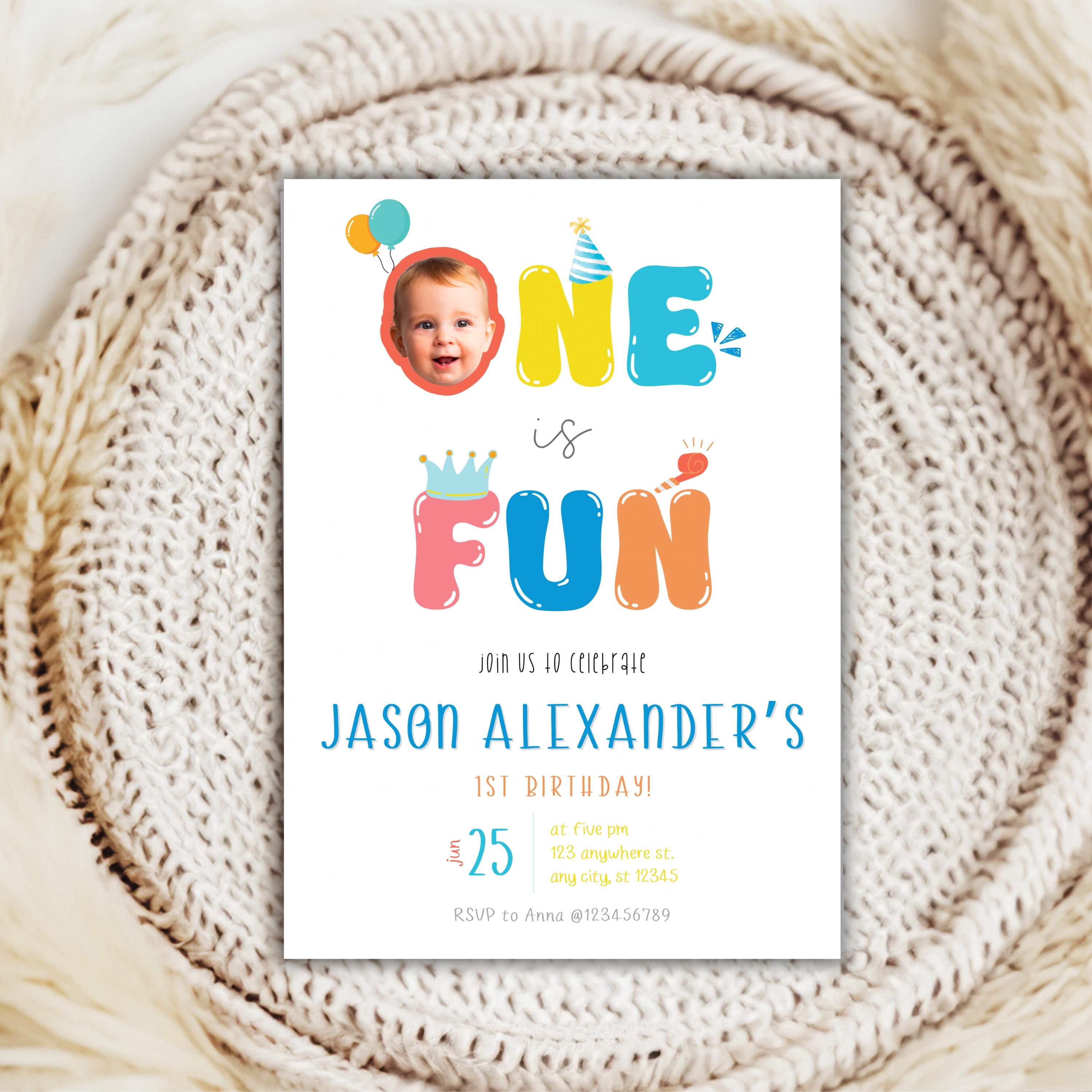 Printable One is Fun Photo Birthday Invitation, Gender Neutral Fun to ...