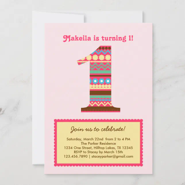 Big Number One Birthday Invitation | Zazzle