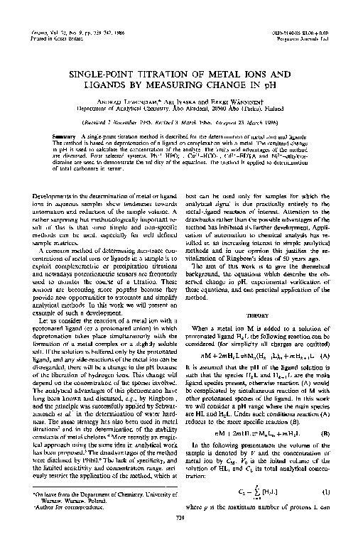 (PDF) Single-point titration of metal ions and ligands by measuring ...
