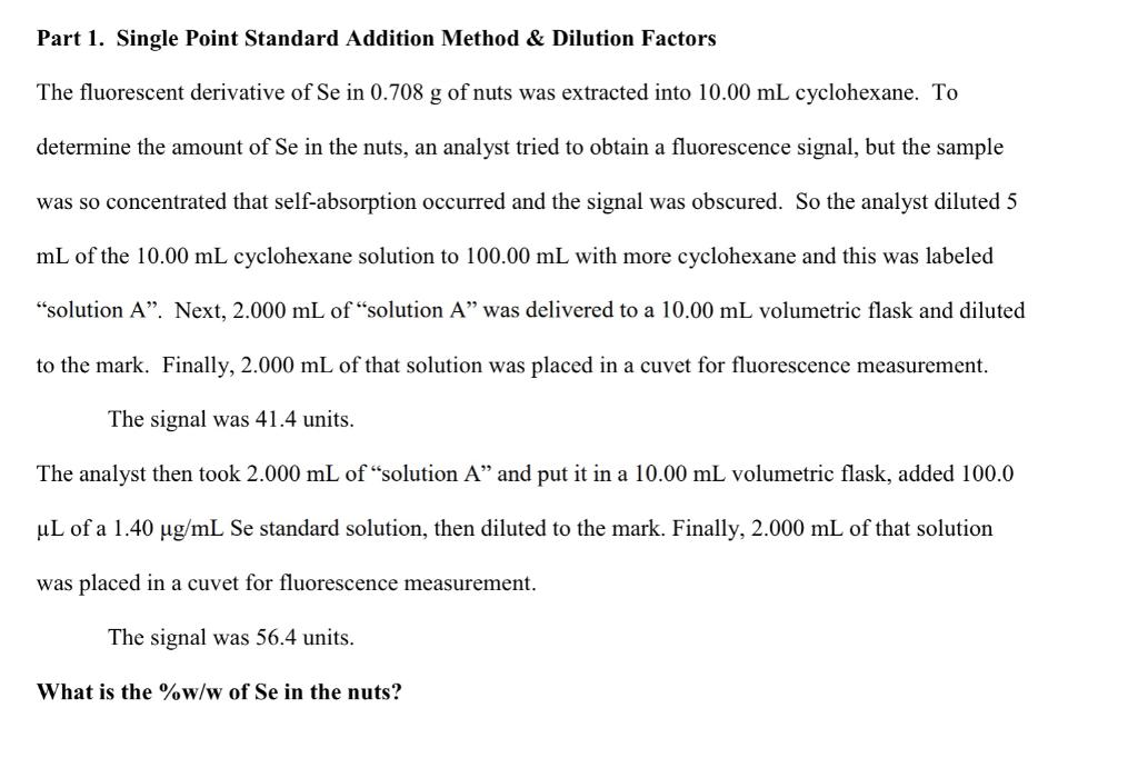 Solved Part 1. Single Point Standard Addition Method \& | Chegg.com