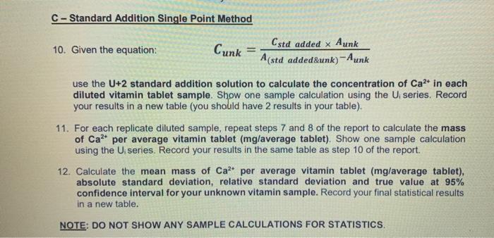 C-Standard Addition Single Point Method 10. Given the | Chegg.com