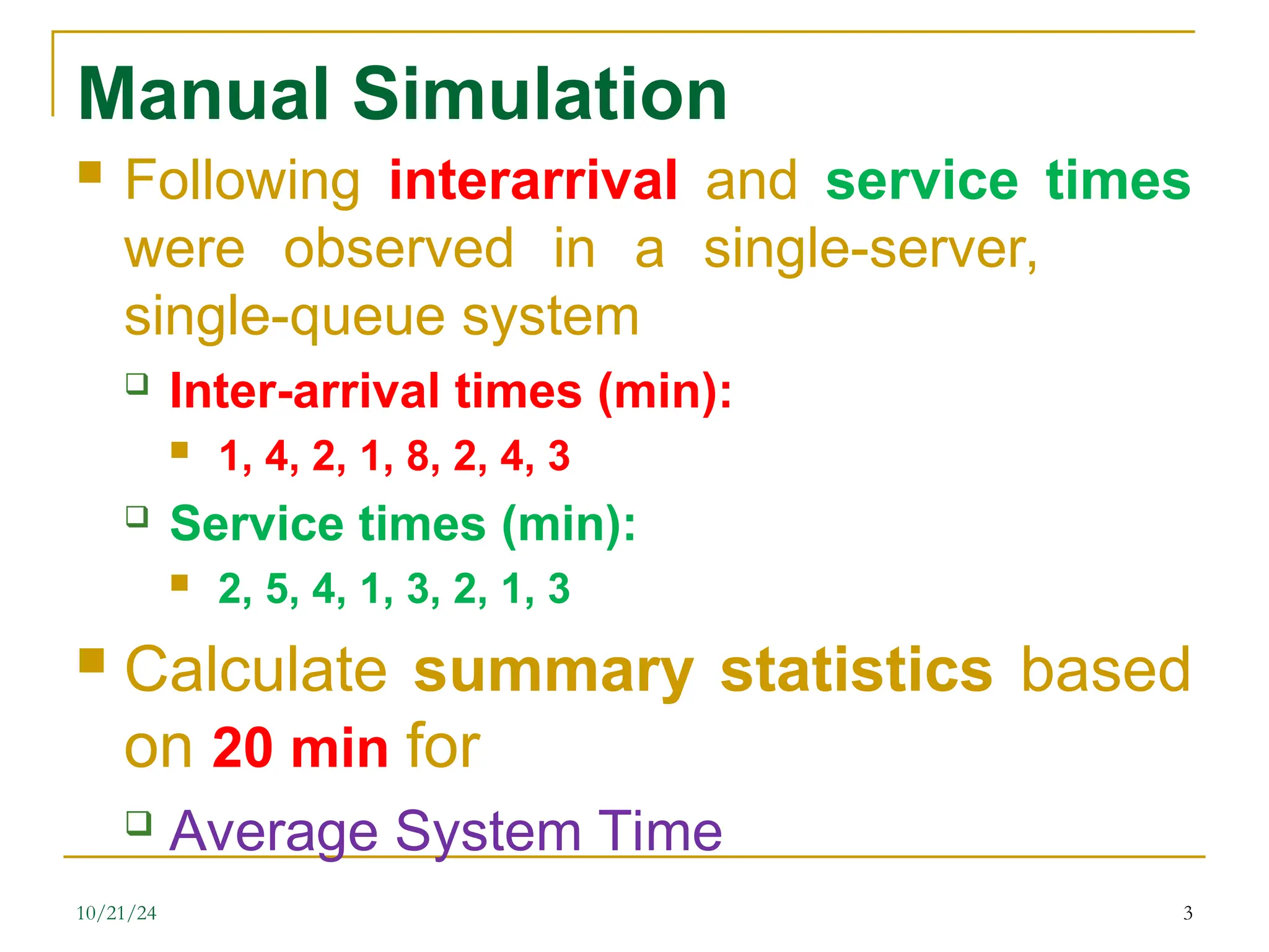 Single-server, single-queue System Manual Simulation | PPT | Free Download