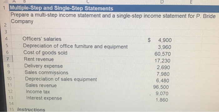 Solved Multiple-Step and Single-Step Statements Prepare a | Chegg.com