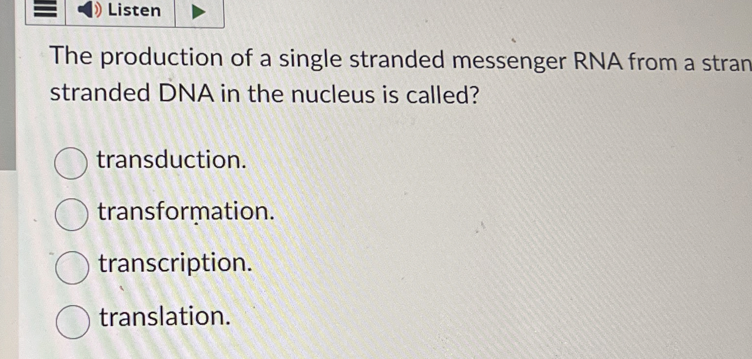 Solved ListenThe production of a single stranded messenger | Chegg.com