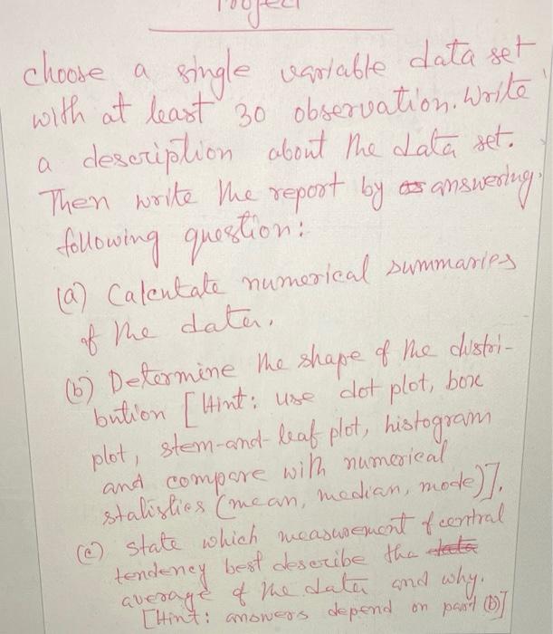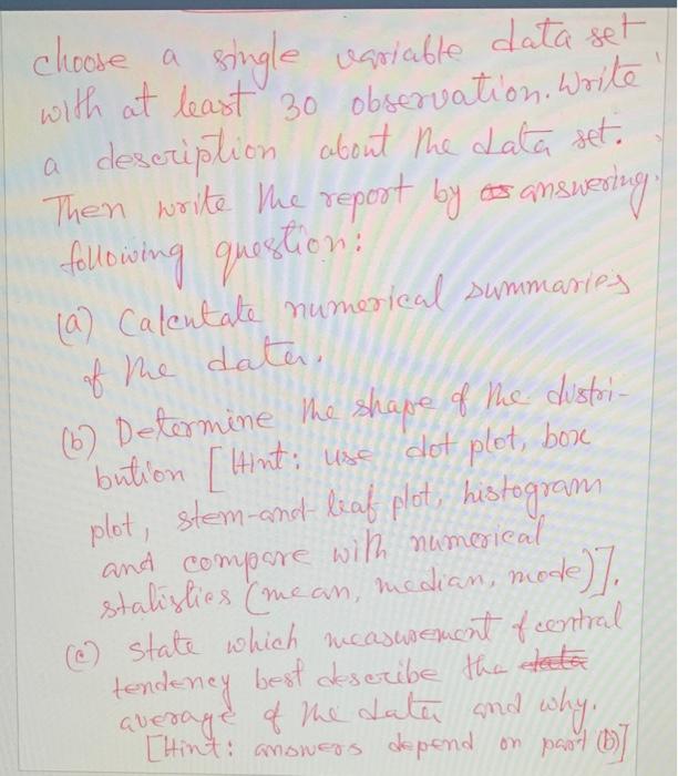 Solved choose a single variable data set with at least 30 | Chegg.com