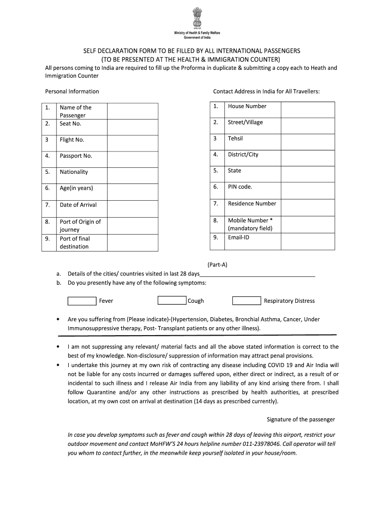 Self Declaration Form Details For International Arriving Passengers | PDF