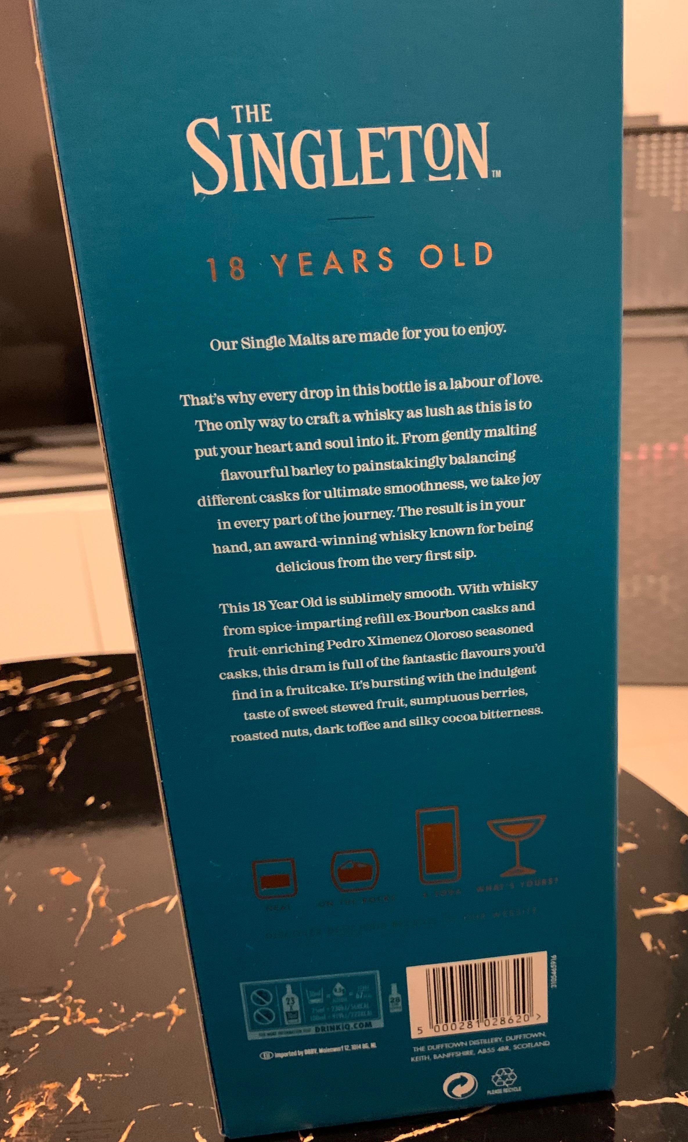 Singleton 18 Year Old Single Malt, 700ml (Packaging may vary) : Amazon ...