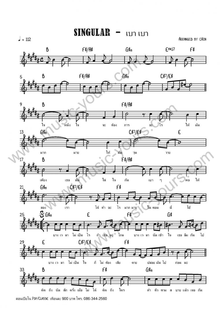 Singular - เบา เบา โน๊ตเปียโน เรียนเปียโน