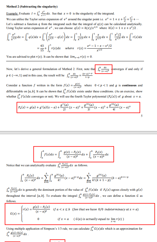 Solved Method 2 (Subtracting the singularity) Example: | Chegg.com