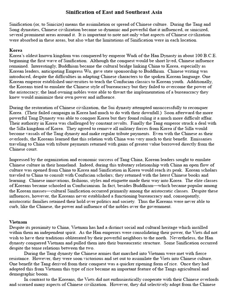 The Sinification (Sinicization) of East Asia: Influence of | Course Hero