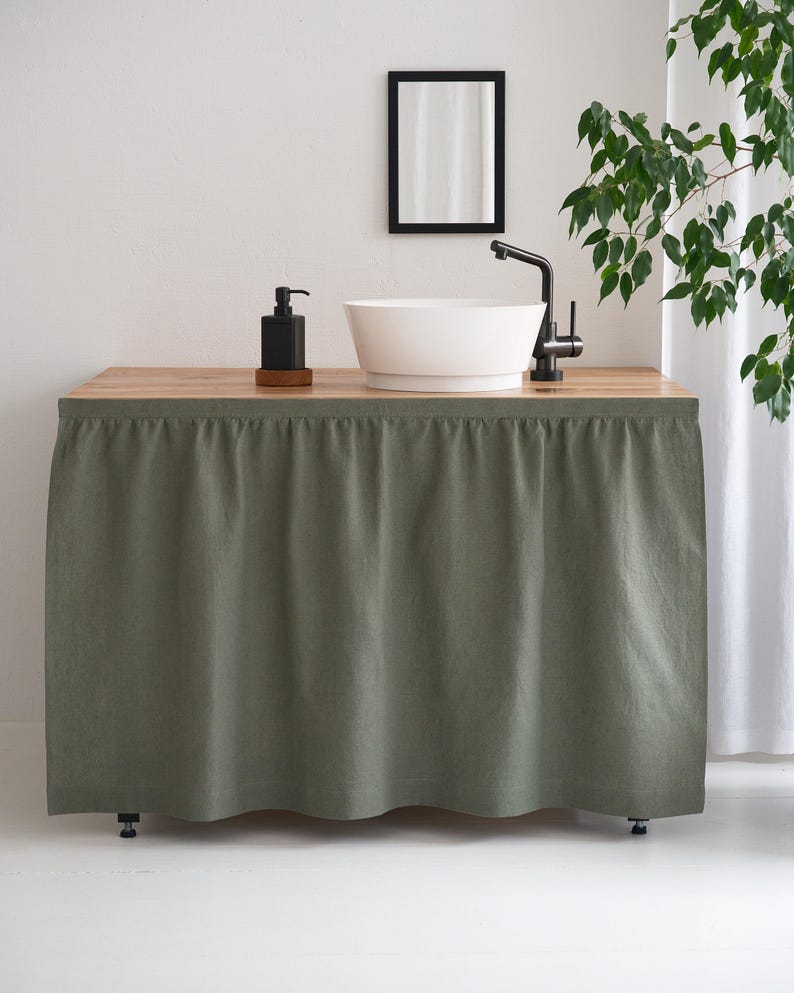 Hook and Loop Cabinet Curtain, Linen Sink Skirt Extra Width, Perfect ...
