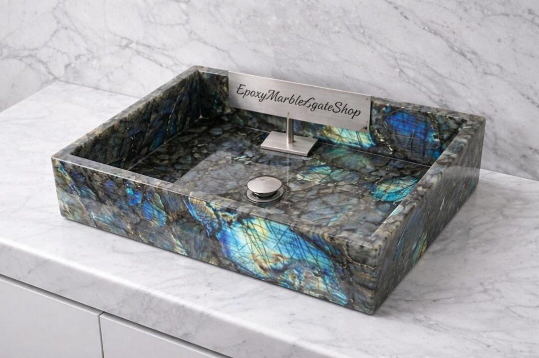 Labradorite Stone Sink – Rectangular Polished Bathroom Vessel Basin - Etsy