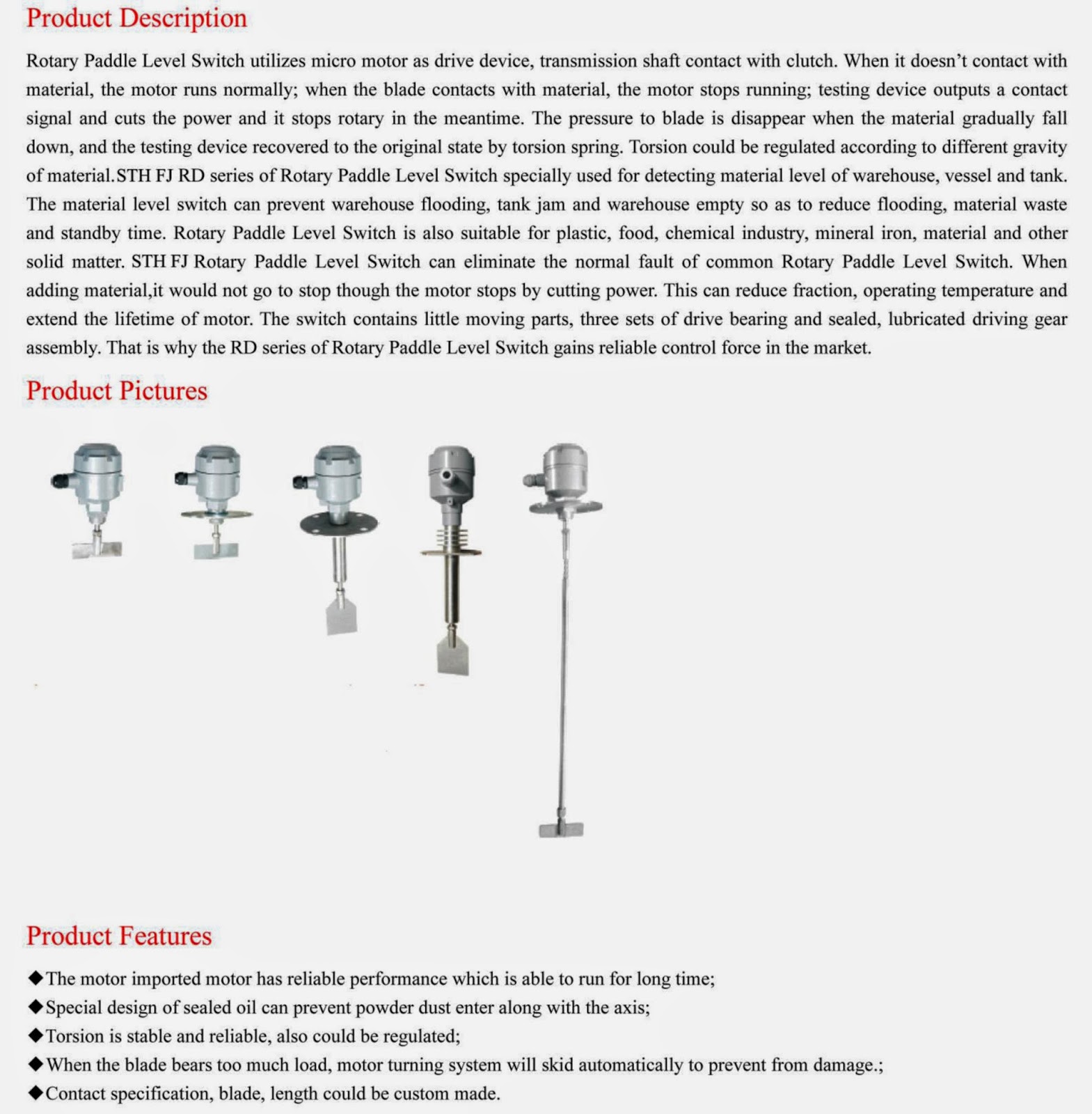 SINTECH -Electric Heater & Thermocouple Specialist: ROTARY PADDLE LEVEL ...