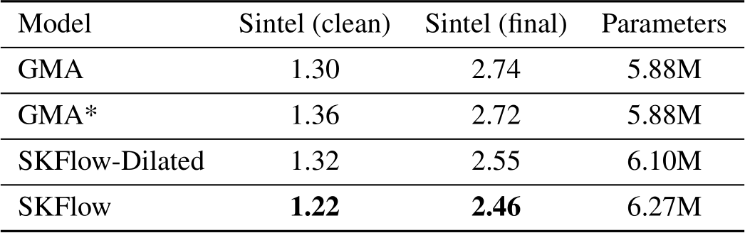 Optical flow estimation on the MPI-Sintel dataset. The first four rows ...