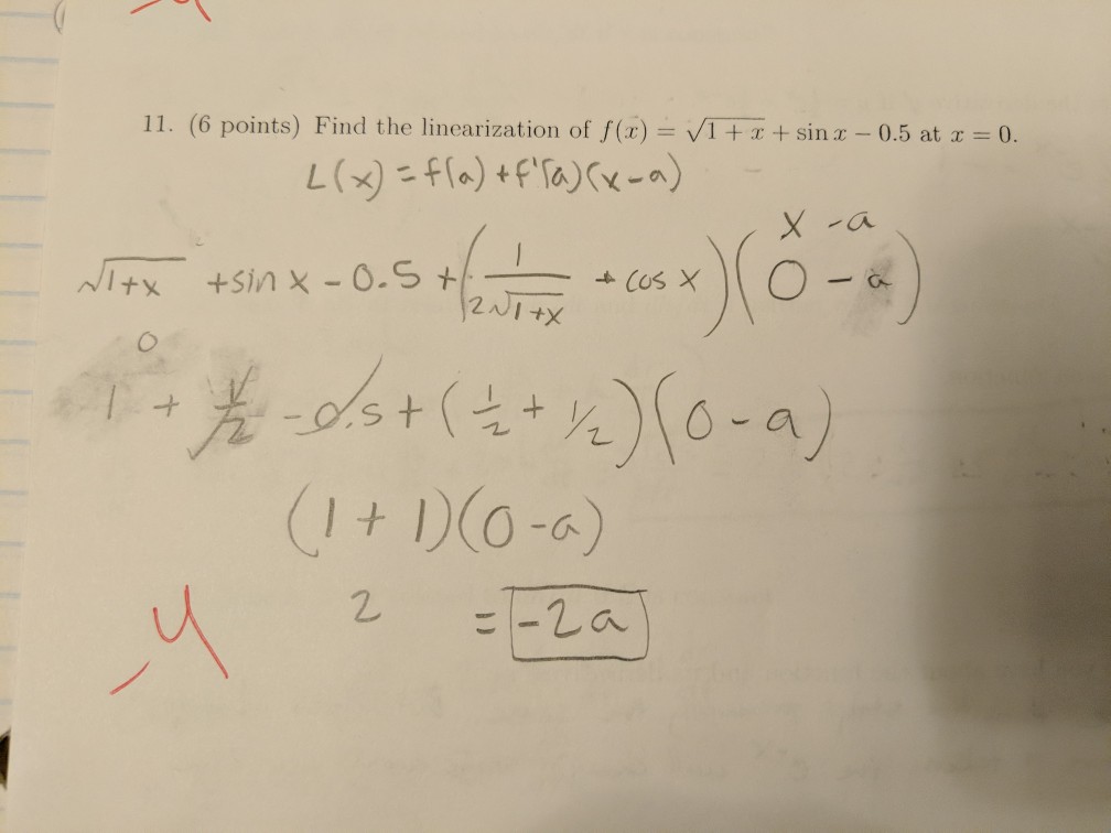 Solved Find the linearization of f(x)= (1+x)^1/2 + sin x - | Chegg.com