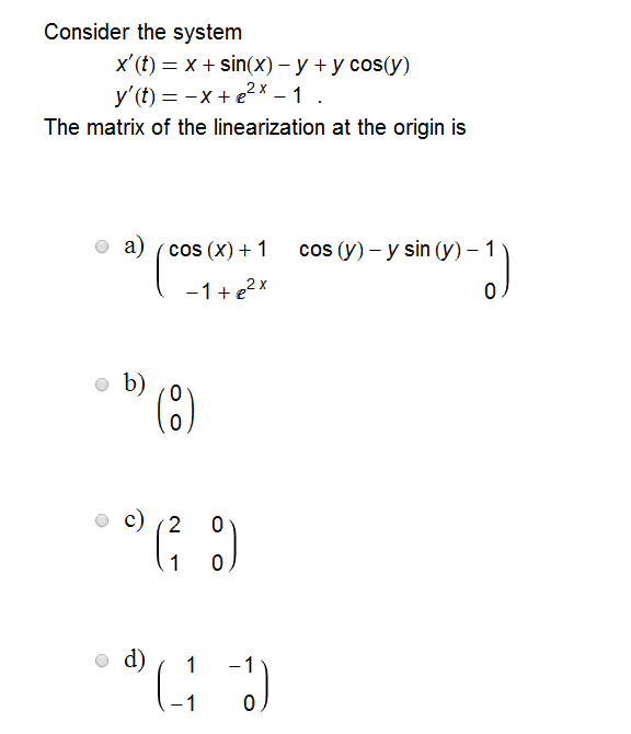 Solved Consider the system x'(t) x + sin(x)-y + y cos y) | Chegg.com