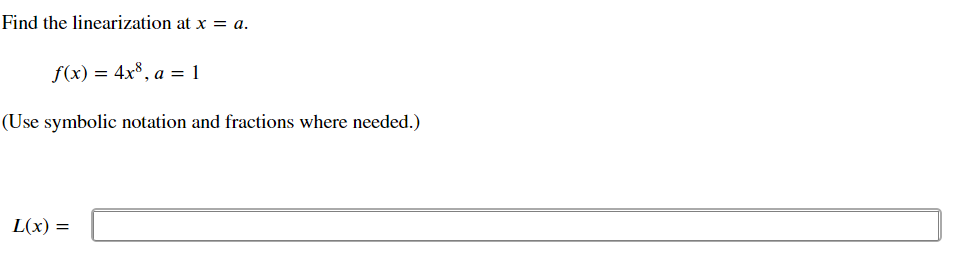 Solved Find the linearization L(x) of the function at a. | Chegg.com