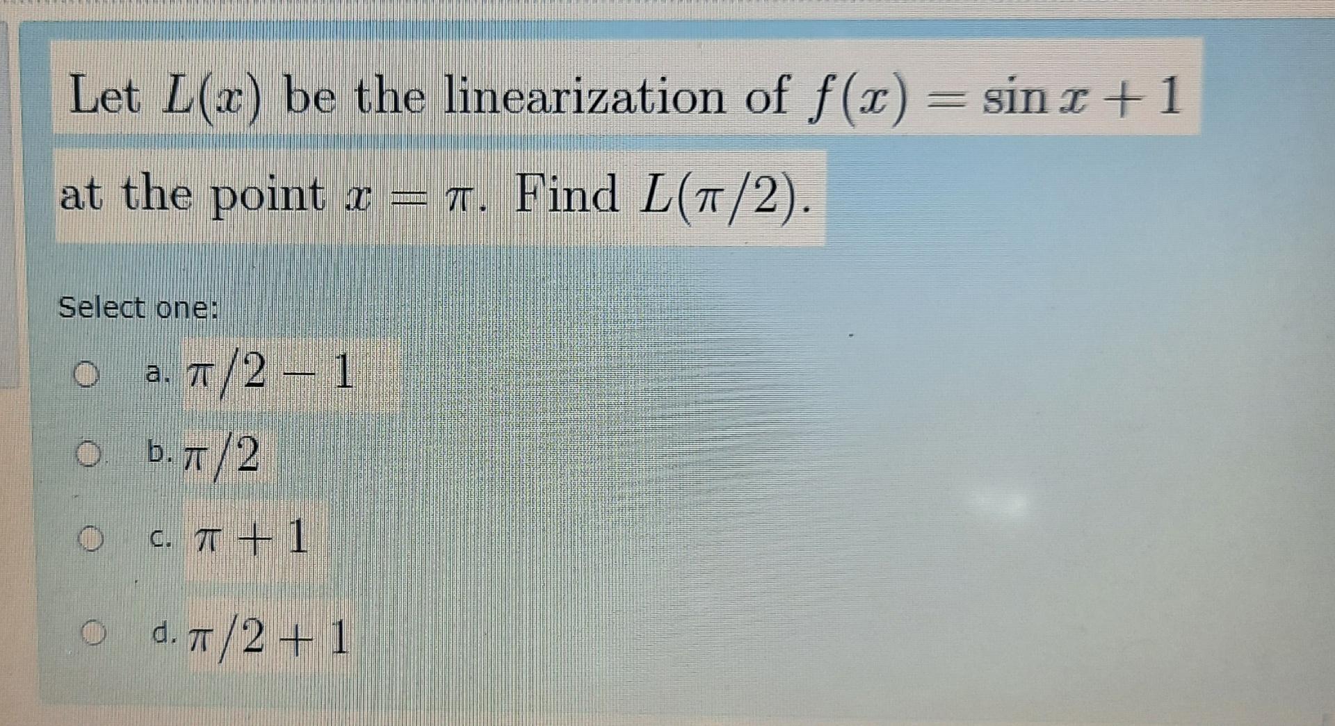 Solved Let L(x) be the linearization of f(x)=sinx+1 at the | Chegg.com