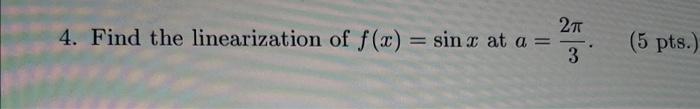 Solved 4. Find the linearization of f(x)=sinx at a=32π. (5 | Chegg.com